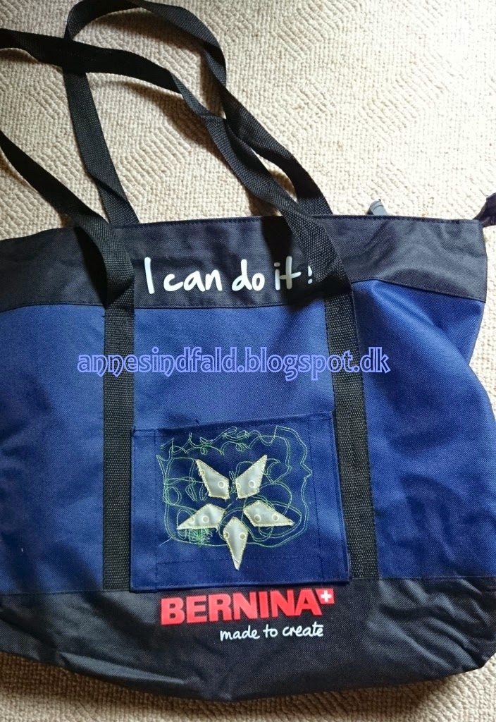 Om til maskinen bagved og sy en stjerne... dvs maskinen syede en stjerne, mens Gitte kiggede på!!